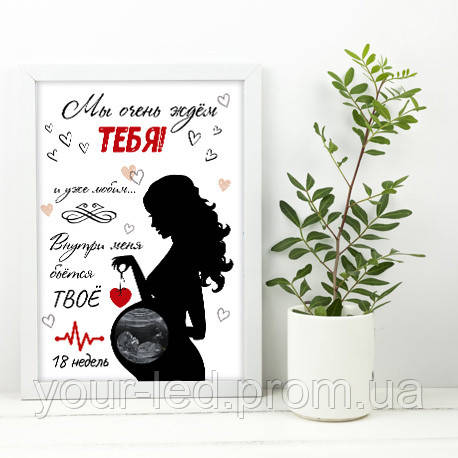 Перше фото малюка можна оформити у вигляді постера. Оригінальний дизайн прикрасить як дитячу кімнату так і спальню батьків і збереже в пам'яті такий трепетний момент - очікування малюка.